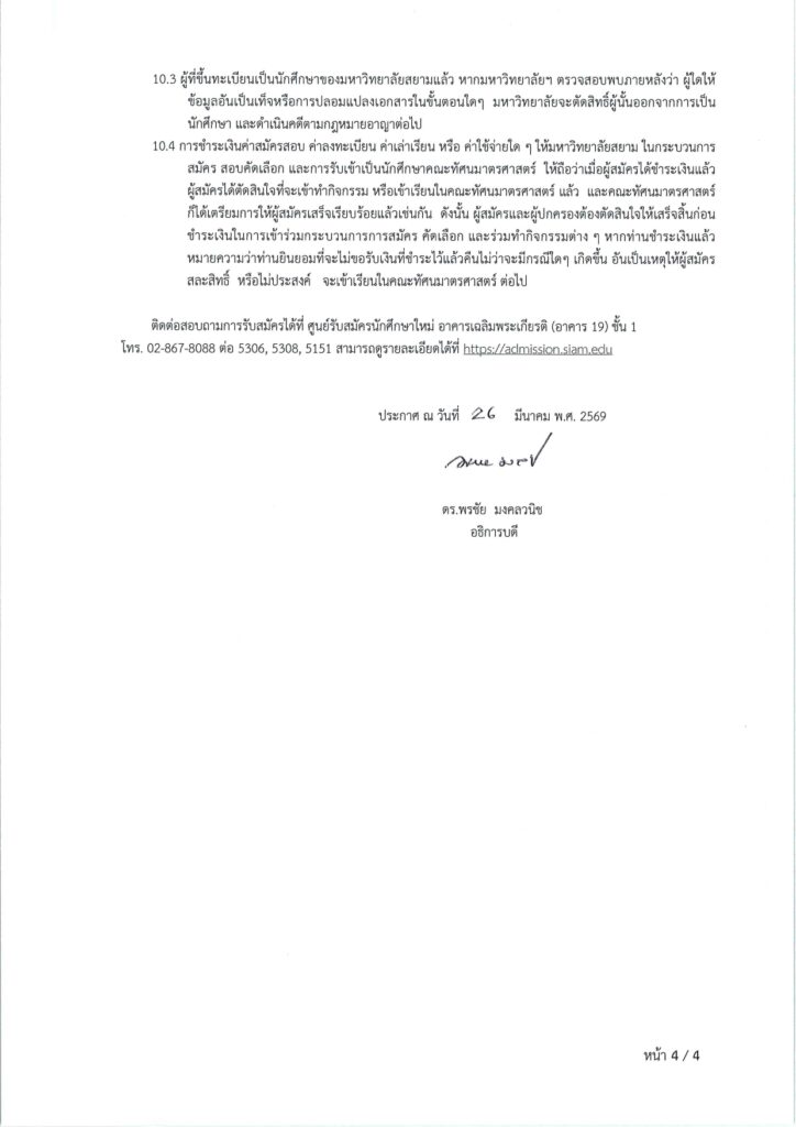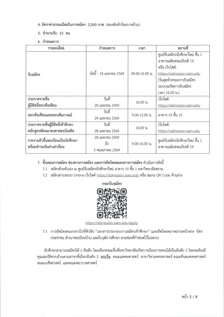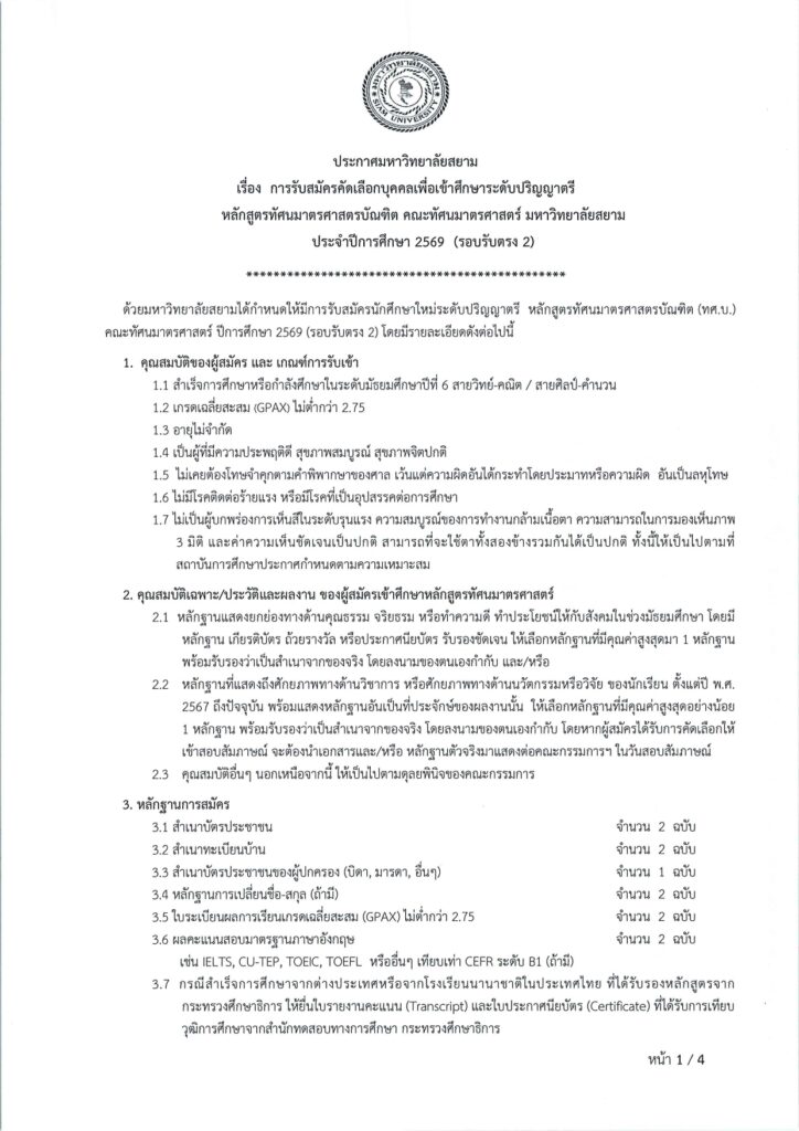 การรับสมัครคัดเลือกบุคคลเพื่อเข้าศึกษาระดับปริญญาตรี หลักสูตรทัศนมาตรศาสตรบัณฑิต คณะทัศนมาตรศาสตร์มหาวิทยาลัยสยาม ประจำปีการศึกษา 2569 (รอบรับตรง 2) Share: